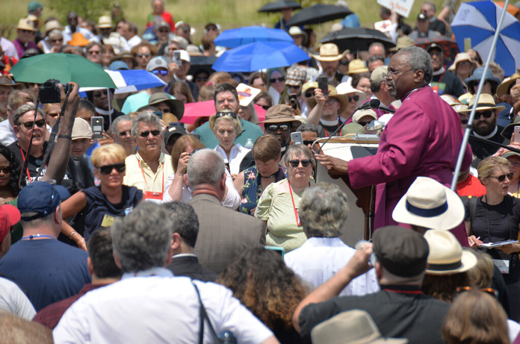 A thousand Episcopalians, at least two for every one female incarcerated at the Hutto Detention Center in rural Texas, stood under the blistering sun July 8 in public witness to the actions of the U.S. government in its enforcement of immigration policies that have separated families over the last couple of months and have led to roundups of migrants and deportations.