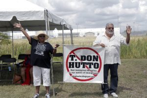 Standing just outside the detention centre’s chain-link fence, Taylor community members Jose Orta and Audrey Amos McGreenee held a sign to T. Don Hutton reading “End immigration detention in our nation of immigrants.” In 2006, the prison was converted from a medium-security prison to a family detention centre, and then in 2009 to an all-women for-profit detention centre, housing migrant women, some having been separated from their children, Orta said in an interview with Episcopal News Service.
