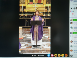 At the American Cathedral of the Holy Trinity in Paris, the Dean Lucinda Laird and Canon Linda Grenz, both resident in the cathedral complex, are holding the fort. France is in near-total lockdown, so few others can enter the building. With Grenz’s husband, Dr. Delbert Glover, as lay reader and youth coordinator Cian Grourke as cameraman, they are holding livestreamed Sunday services and morning prayer on weekdays.