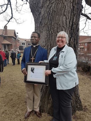 The event ended with a ceremony designating the prominent white oak overlooking the walkway to the entrance of the church as a “heritage tree.”