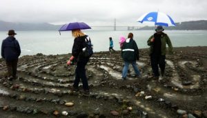 San Francisco’s Lands End in the Golden Gate National Recreation Area is a favorite destination among Holy Hikers because it is close to the ocean. The group hikes out a mile and a quarter to a stone labyrinth overlooking the waves and surf.