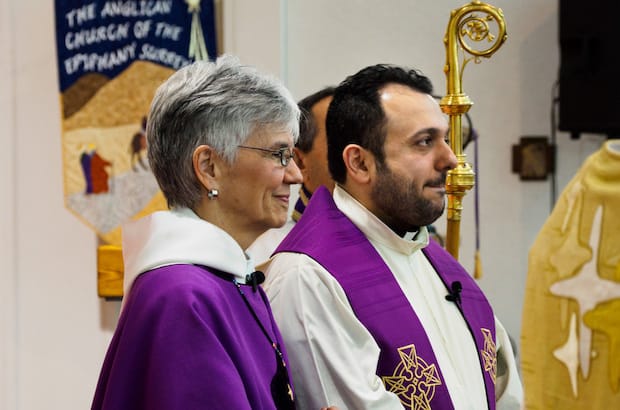 New Westminster Bishop Melissa Skelton introduces the Rev. Fr. Ayoob Adwar as a new priest in the Anglican Church of Canada. Photo: Wayne Chose
