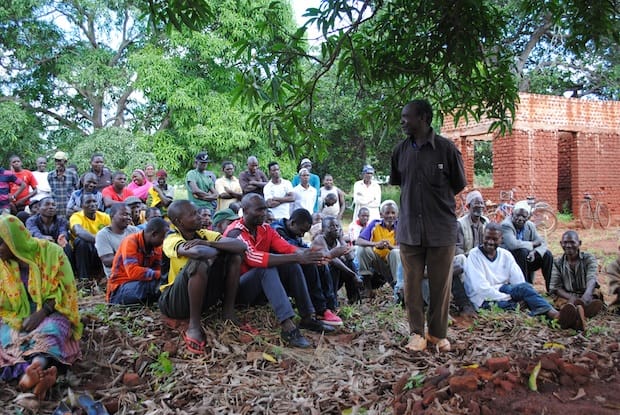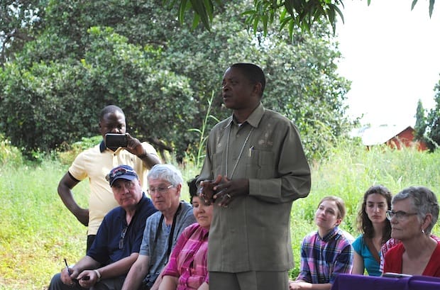 The diocese of Masasi’s Bishop James Almasi stands beneath the spreading branches of a large tree at the centre of the village, and pauses as the people seated before him acknowledge his greeting with the traditional response: “Alaikum Salaam” (And to you, peace).
