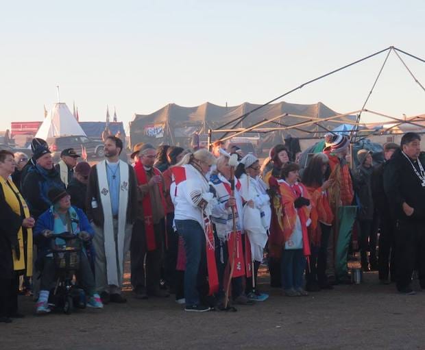 On November 3, the clergy assembled by the camp’s sacred fire, and all the denominations that had repudiated the Doctrine of Discovery-a group that includes both the Anglican Church of Canada and The Episcopal Church-reiterated their renunciation in front of the camp and its elders.