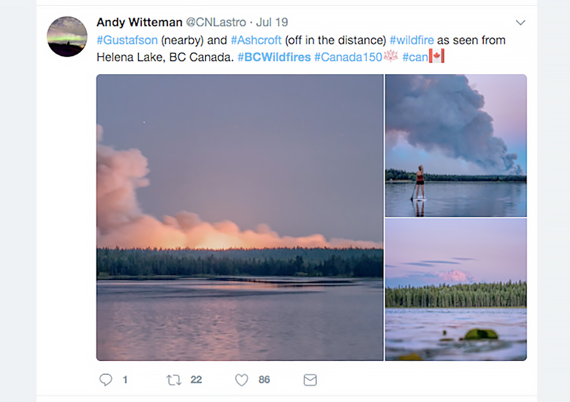 “All of the people of 100 Mile House and Williams Lake, as well as smaller communities along the Cariboo Highway, have been evacuated,” he said. “Most have come to either Kamloops in the south or Prince George in the north. Most evacuees left their homes with very little, and we don’t know how long it will be until they get home.”
