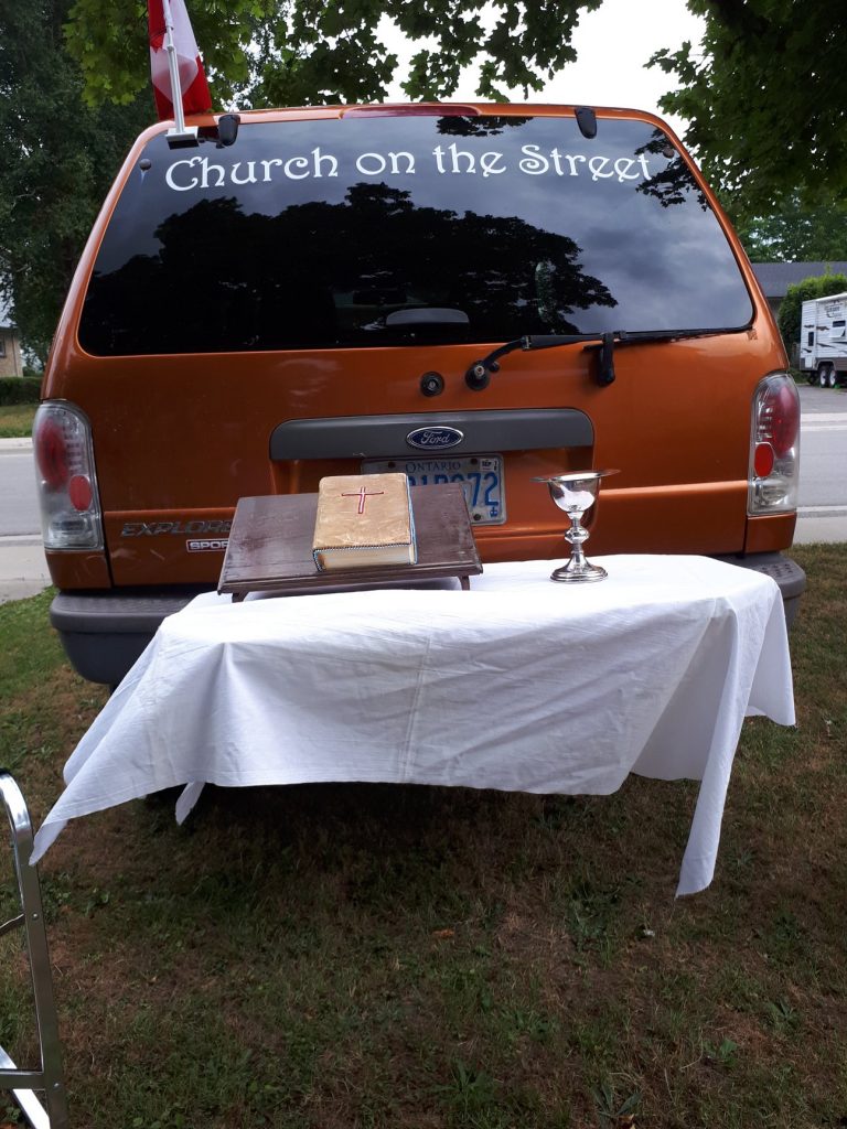Our House eventually proved unsuccessful, and was folded last spring. But in the meantime, Martin had been beginning a separate ministry, one based on the age-old idea of the itinerant preacher. He stuck “Church on the Street” and “Deus Volens” (“God Willing”) decals on his Explorer, had the vehicle blessed by the local archdeacon and began traveling across the region, getting out into the towns and villages of Huron, especially where churches have been shut down.