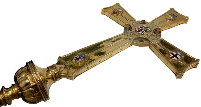 The primatial cross is the only official symbol of the primate of the Anglican Church of Canada. It was first presented to General Synod in 1937 after the submission of numerous designs. The cross is made of silver gilt and features the arms of General Synod and of the four original dioceses of the Canadian church. Photo: Saskia Rowley
