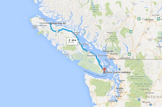 Beginning with a ceremony hosted by ‘Namgis First Nation in the community of Alert Bay, where the infamous St. Michael’s Indian Residential School stood from 1929 until its demolition in February 2015, McMenamie will follow Highway 19 through the rugged interior of Vancouver Island and down the east coast to Victoria, where he will arrive in time to celebrate Easter.