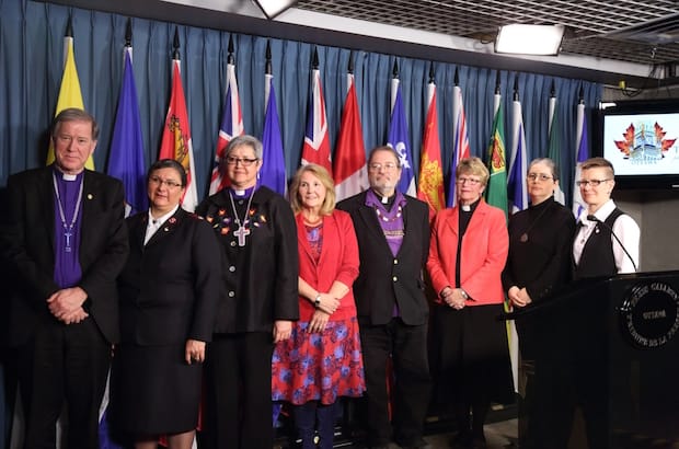 Also at the news conference were the Rt. Rev. Jordan Cantwell, moderator, United Church of Canada; the Rev. Karen Horst, moderator, Presbyterian Church in Canada; National Bishop Susan Johnson, Evangelical Lutheran Church in Canada; Manuela Popovici, Religious Society of Friends (Quakers); and Major Shari Russell, representing the Salvation Army.