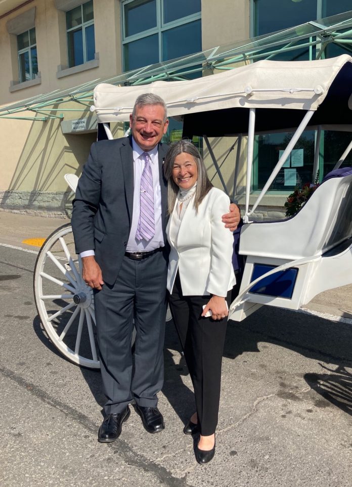 Oulton and Kiwala were picked up in a white horsedrawn wedding carriage that took them through downtown Kingston to the ferry to the island.
