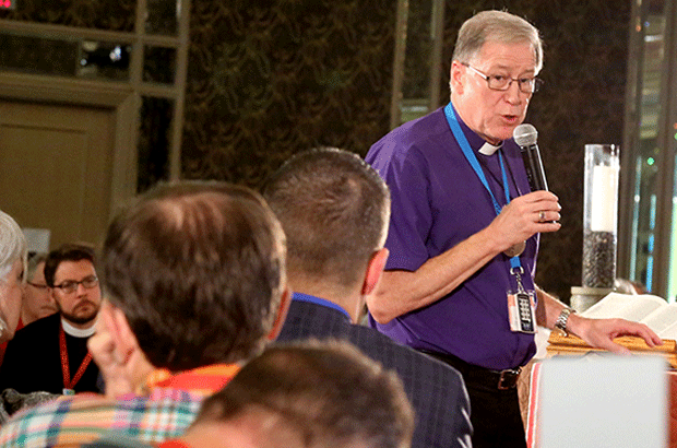 In an impromptu speech and prayer that lasted nearly 20 minutes, Archbishop Fred Hiltz, primate of the Anglican Church of Canada, sternly reminded members of General Synod to show “holy manners” toward one another when discussing same-sex marriage in their neighbourhood groups.
