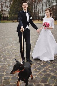 “Dogs don’t usually come into a cathedral or church and walk down an aisle perfectly. They’re sniffing and they’re barking,” she says. “The time of a kiss or something, that’s when barking can start or the dog can try to get between the bride and groom.”