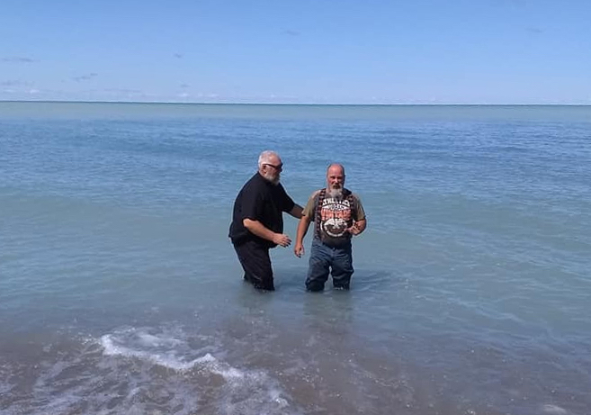 Church on the Street is open to everybody, but does much of its of work with bikers, partly because of Martin’s many links with the Ontario motorcyclist community. He has been involved with ministry of one kind or another to bikers for two decades, serving—among other roles—as official chaplain to the Ontario chapter of the Association of Bikers for Awareness, Training and Education (ABATE), a group for motorcycle enthusiasts, for 18 years until his retirement this year. He worked hard over those years, Martin says, to overcome the bikers’ distrust of religious authority, setting up coffee, water and first aid stations at motorcycle rallies, focusing on building up relationships. Eventually, some club members started asking for blessings and services.