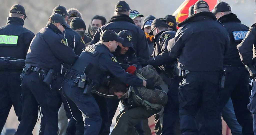 Dozens of people were arrested during the Feb. 6 raid and in the following weeks. These arrests included three of the five Wet’suwet’en hereditary chiefs who opposed the building of the pipeline in their territory without the “free, prior and informed consent” of their nation’s traditional leaders, as stipulated by the United Nations Declaration on the Rights of Indigenous Peoples (UNDRIP).